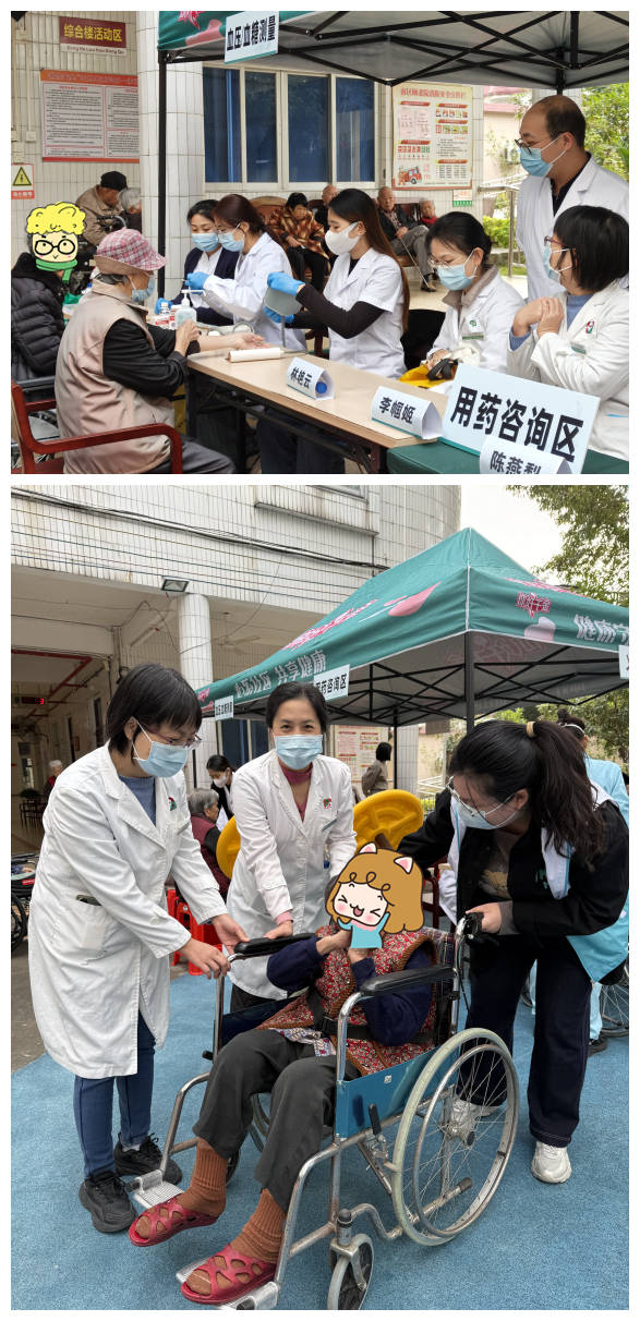 与此同时,护理团队同步开展健康服务。杨顺玉护士长与内科护士林洪池、代佳丽,为长者逐一测量血压、检测血糖,同时结合检测结果,用通俗易懂的语言科普慢性病日常管理知识,帮助长者提升健康防护意识。