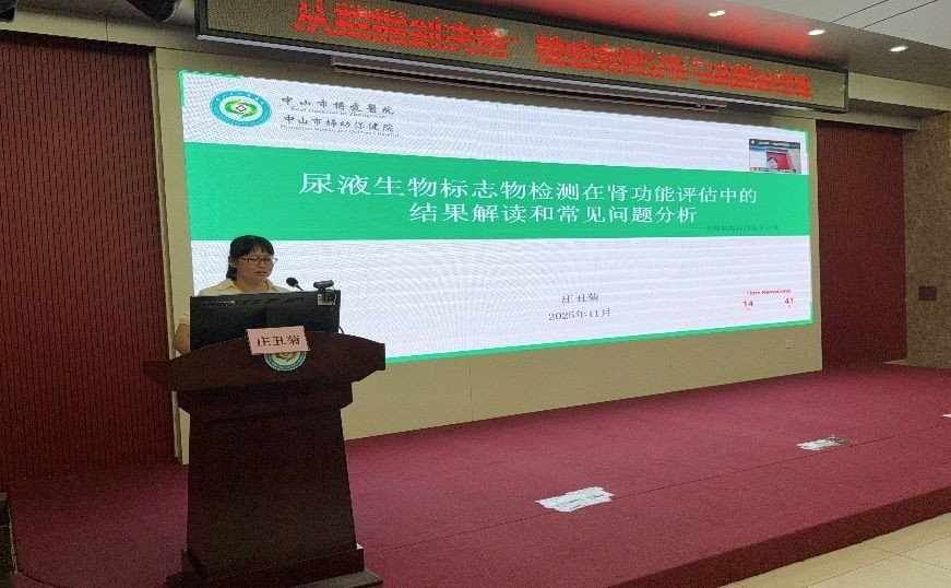 中山市博爱医院检验科副主任技师庄丑菊深入解读了《尿液生物标志物检测在肾功能评估中的结果解读和常见问题分析》,清晰梳理了各项指标的临床意义与常见陷阱,提升了与会者对早期肾损伤诊断的认识。