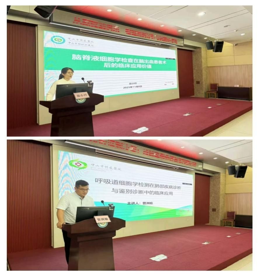 接着,中山市博爱医院检验科副主任技师翁小玲和曾洲榆分别从《脑脊液细胞学检查在脑出血患者术后的临床应用价值》和《呼吸道细胞学检测在肺部疾病诊断与鉴别诊断中的临床应用》角度,系统展示了细胞形态学在中枢神经系统与肺部疾病诊断与鉴别诊断中的不可替代性。