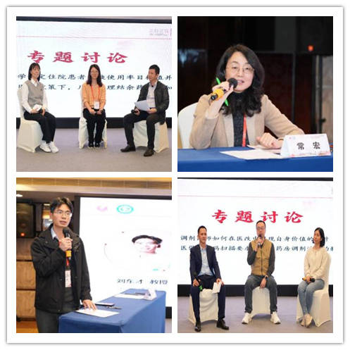 下午场讨论首先由深圳市妇幼保健院常宏主任主持,邀请珠海市妇幼保健院王丽主任、中山市中医院吴惠妃主任、中山市小榄人民医院李健荣主任,围绕“如何科学制定住院患者输液使用率目标值并实施?”“在当前医保政策下,儿科合理结余药品应如何处置?”等问题开展了全景式的学术对话。接着由中山市博爱医院(妇幼保健院)刘东才主任主持,邀请中山火炬开发区人民医院刘曦主任、中山陈星海中西医结合医院庞健辉主任、中山市人民医院南朗分院陈利芳主任,围绕“调剂药师如何在医改中实现自身价值的提升?”“医保追溯码扫描要求对住院药房调剂流程的影响及应对方案?”等问题开展了靶向痛点的学术研讨。