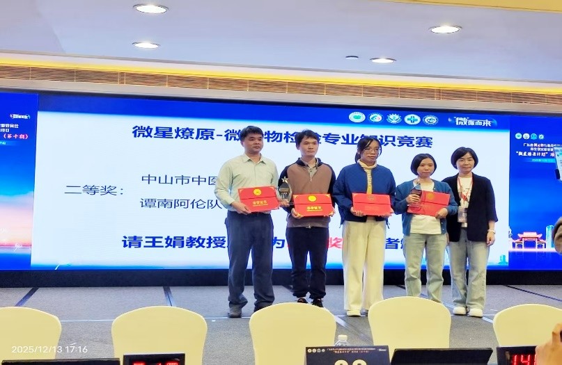 在随后举办的临床微生物知识与技能竞赛中,各参赛队伍历经初赛、复赛两轮激烈角逐,展现出扎实的专业功底与敏锐的临场应变能力。最终,中山市博爱医院副主任技师谭南、张炽伦凭借出色发挥,从众多优秀选手中脱颖而出,荣获二等奖。这份荣誉不仅是对两人专业能力的充分肯定,也展现了中山市博爱医院微生物检验团队的整体实力,为医院乃至本市检验学科的发展增添了亮眼的一笔。