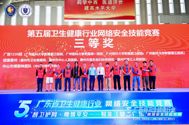 在初赛阶段,中山市共选派了三支实力强劲的队伍出征。面对激烈的竞争,医院信息科吴瑞霞科长统筹全局,四位队员在长达数小时的实景防御与理论考核中沉着应战,最终以优异成绩斩获三等奖,并成为中山市唯一获得全国总决赛入场券的队伍,并将作为广东省14支代表队之一,与省内兄弟单位(如广东省中医院、中山大学附属第一医院、南方医科大学南方医院等)组成“广东军团”,与来自全国各地的网络安全精英展开巅峰对决。充分彰显了医院在区域医疗网络安全领域的领跑地位。