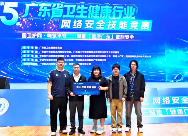 在刚刚结束的2026年第五届广东省卫生健康行业网络安全技能竞赛中,中山市博爱医院传来捷报!由信息科科长吴瑞霞带队,林少杰、马龙、黄文杰、罗方泓组成的“中山市博爱神盾队”,凭借扎实的技术功底和默契的团队协作,首次参赛便勇夺团体三等奖!在中山市派出的三支参赛队伍中,该团队是唯一一支成功突围、晋级国家级决赛的队伍。实现了医院在该赛事中“零的突破”。