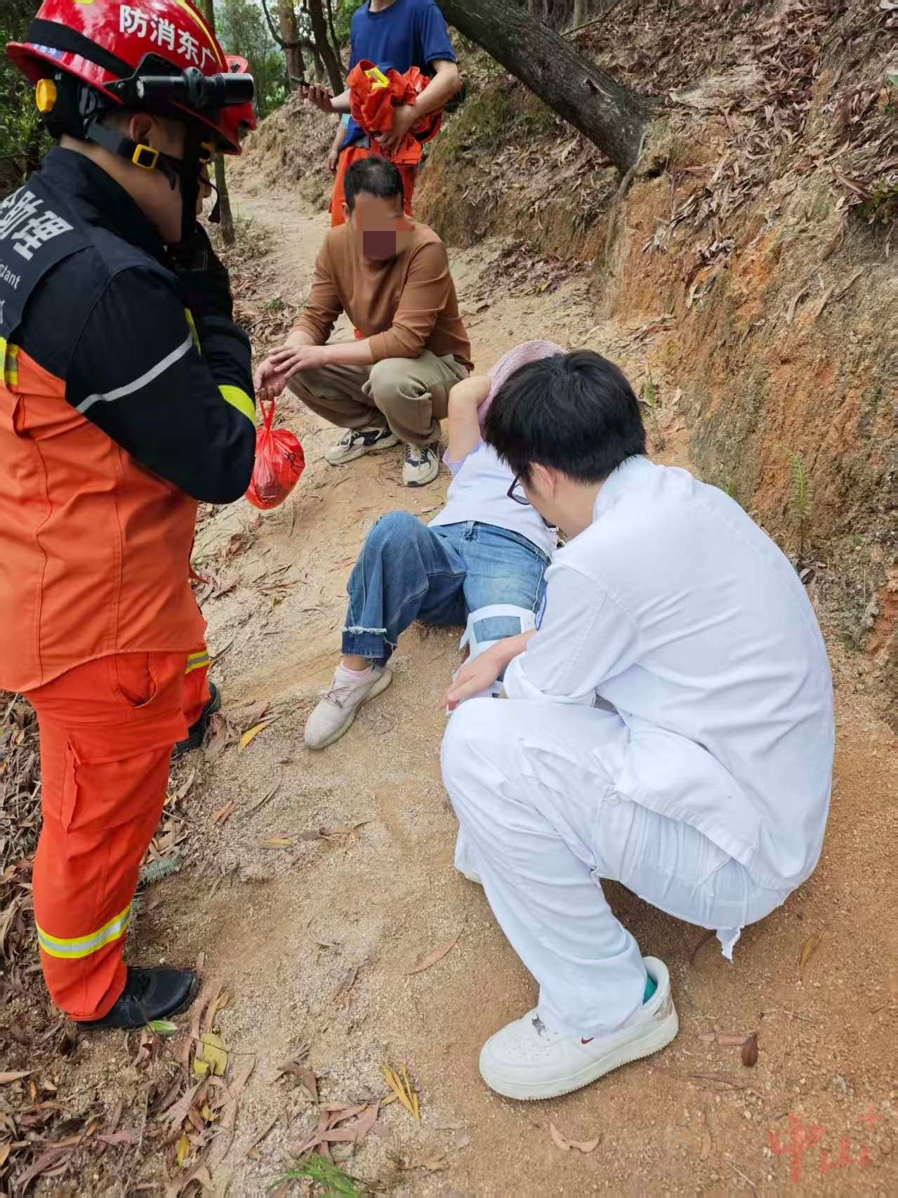 3月29日14时30分左右,中山市博爱医院120急救中心接到接到求助电话,称有一名登山者在大尖山往秀丽湖方向的山上不慎滑倒受伤,急需专业救援。