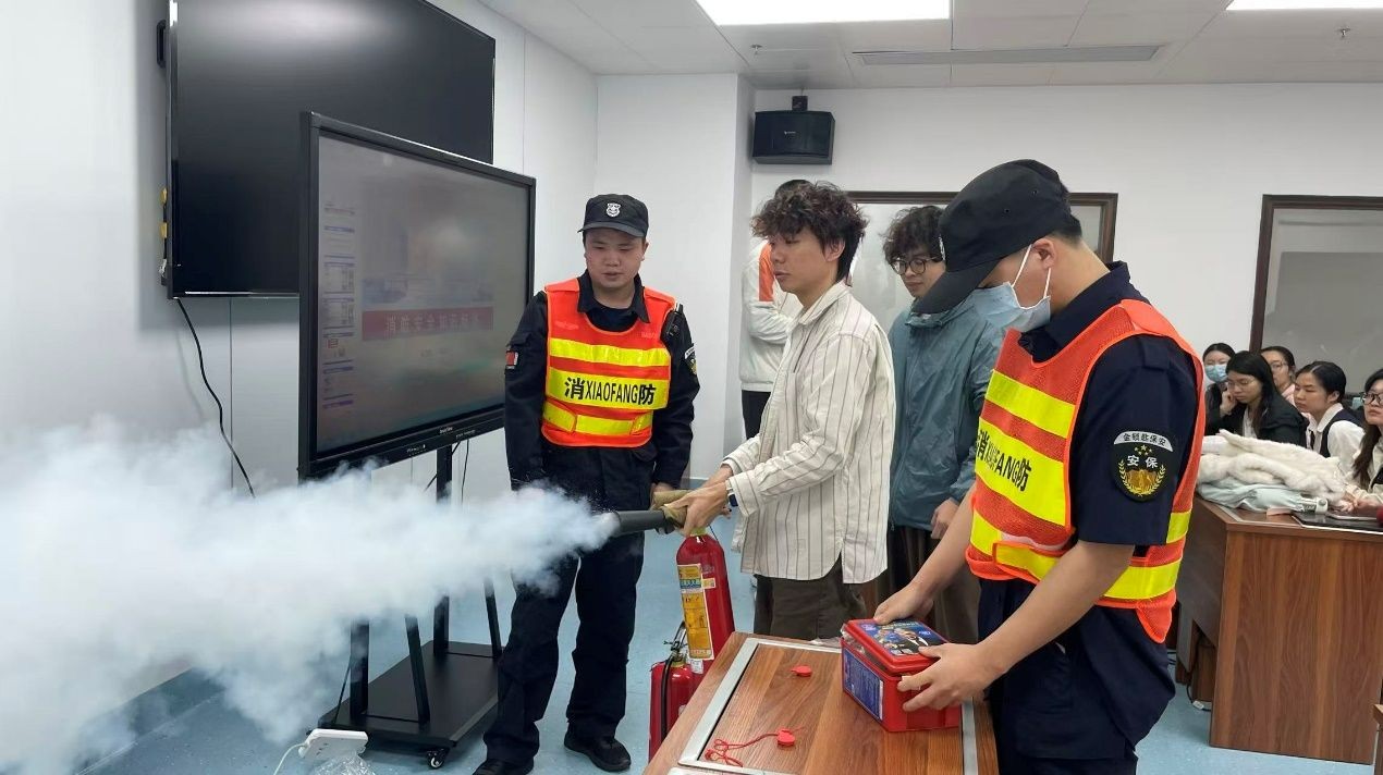 (实习生现场操作灭火器)